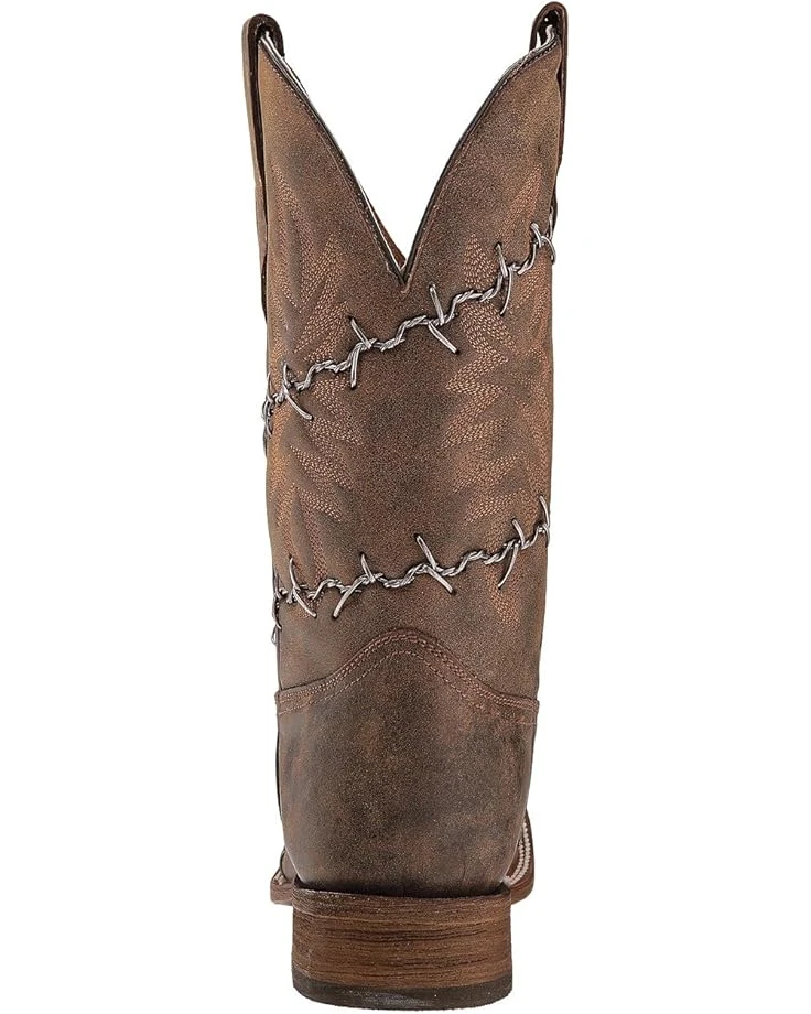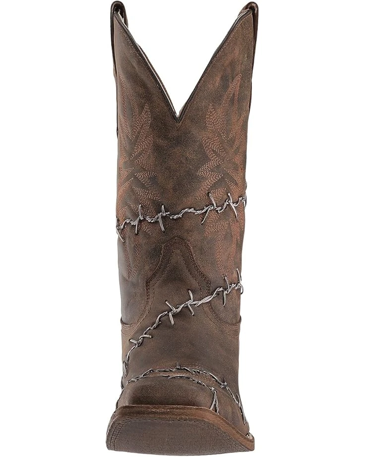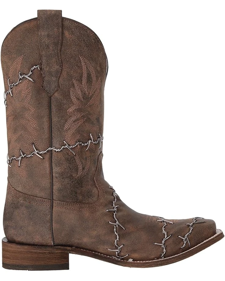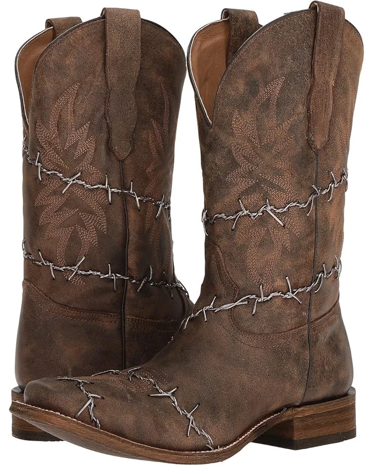 These were a gift that I did not think I would like. Surprise! They fit well. Are comfortable. Made well. And I really thought my foot would feel some of that barbed wire–negative. The artistic addition of what appears to be real barbed wire is in fact and very artful, skilled addition to the boot. They will definitely give your friends something to talk about!