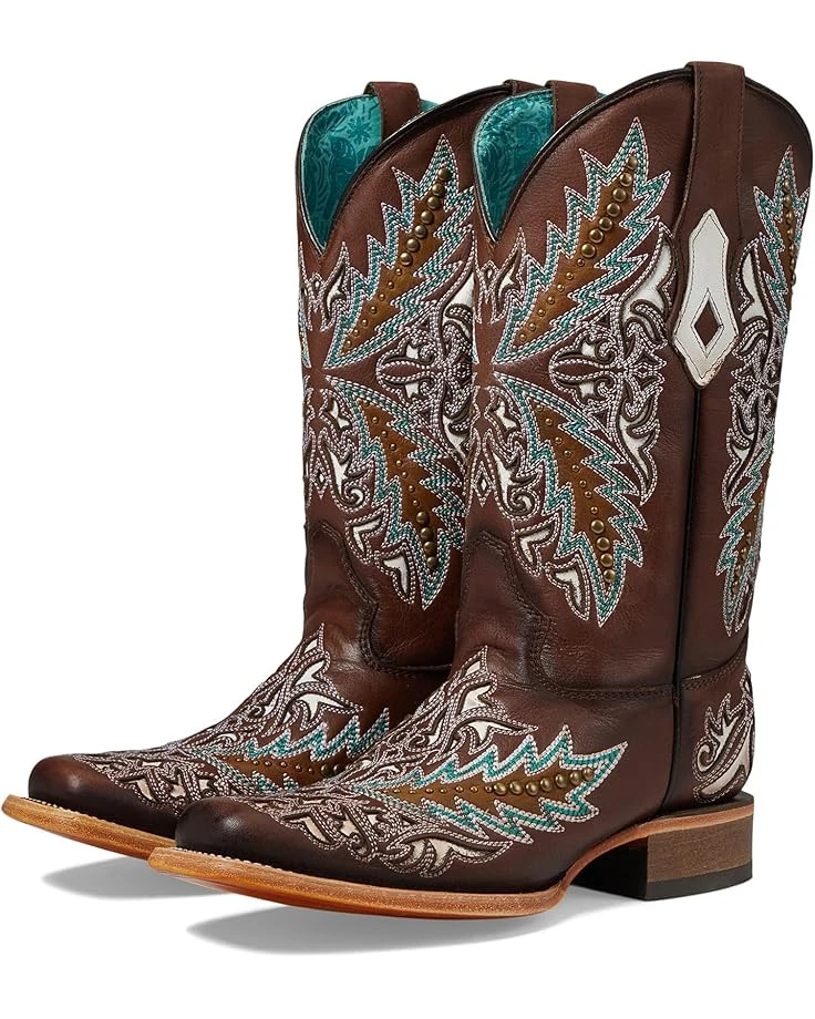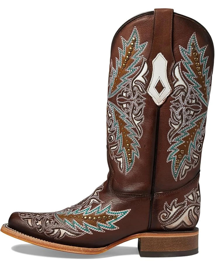 - Showcase fashion-forward perfection wearing the Corral™ Boots C4063 featuring a pull-on style. The calf-high footwear has leather upper construction with embroidery details and mid-top, square toe silhouette.