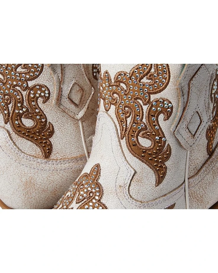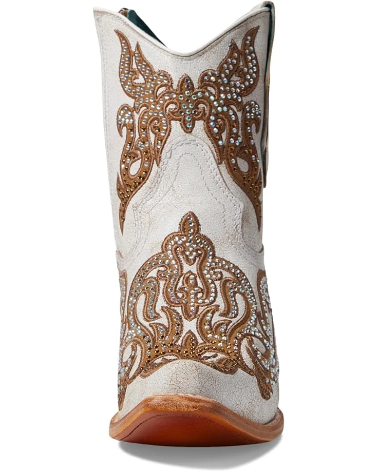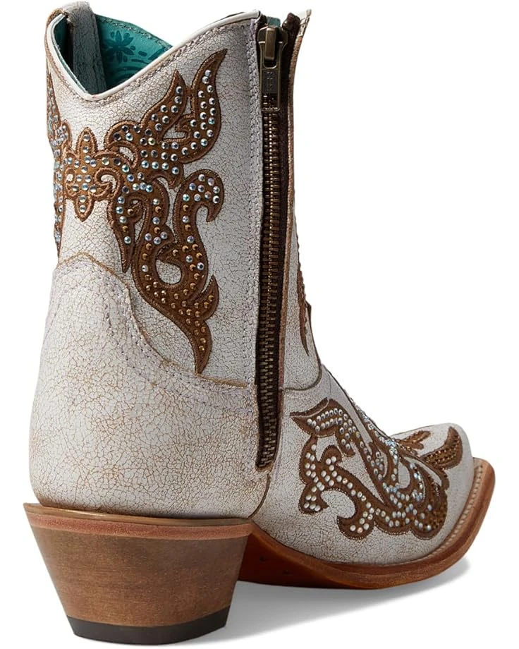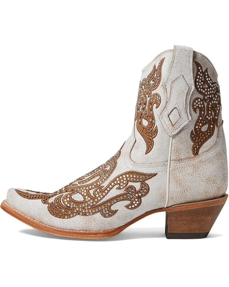 - Make a statement donning the Corral™ Boots C4104. Crafted with luxurious leather upper adorned with embroidery crystal overlays, these ankle-high boots are sure to turn heads wherever you go. The snip toe design and Cuban heels give you a touch of Western flair, while the leather lining and insole keep your feet comfortable all day.