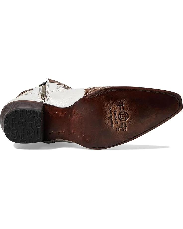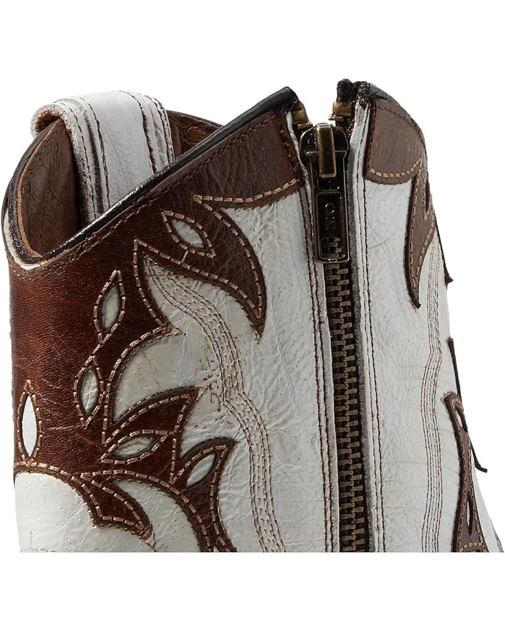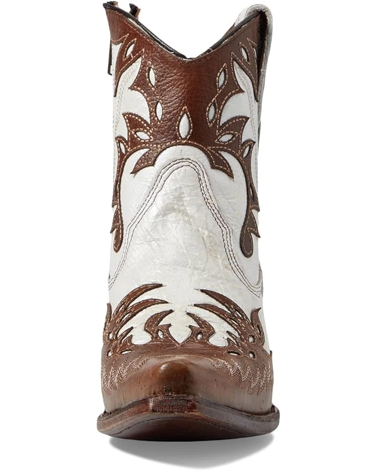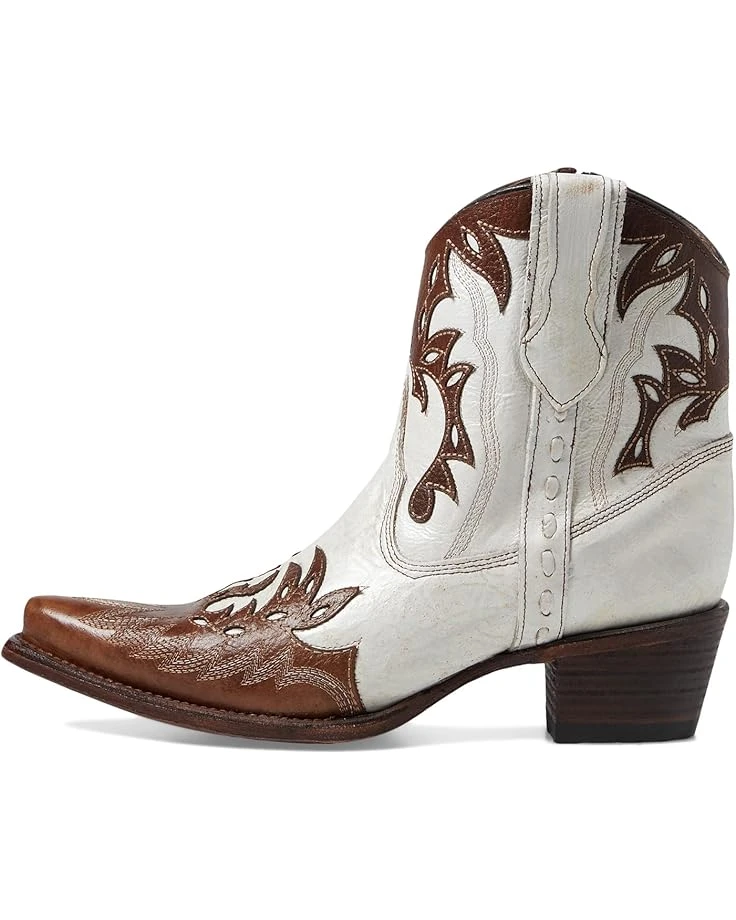 - Boast a refined appeal wearing the Corral Bootsâ„¢ L6099, which are beautifully detailed with intricate lady white-camel embroidery, overlays, and a wing-tip ankle design. The ankle-high boots come with a leather upper, leather lining, and leather insole. These feature a curved top with pull straps and a zippered closure for easy on/off.
