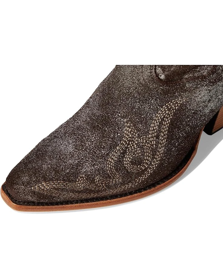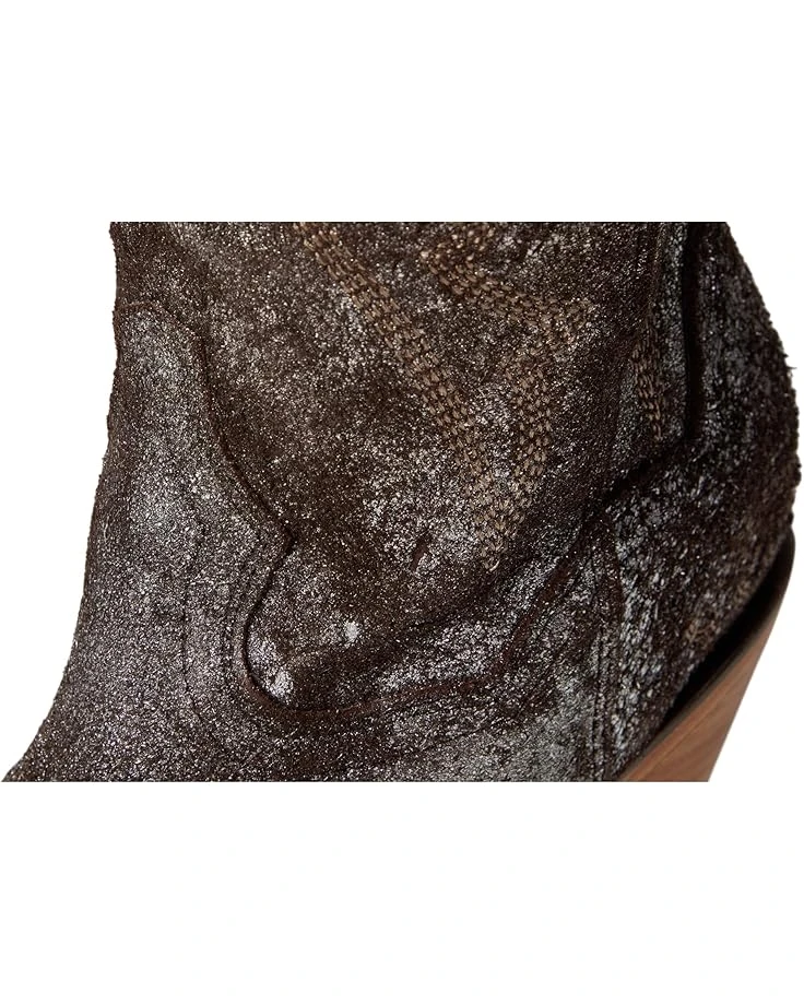 - Funk up your feet wearing the Corral™ Boots Z5242. Crafted from leather upper, lining, and insole, this pair of lady brown-silver metallized, embroidery, and scrunchable boots features above-the-knee silhouette, pointed toe, cuban heels, side zippered closure and back slit detailing.