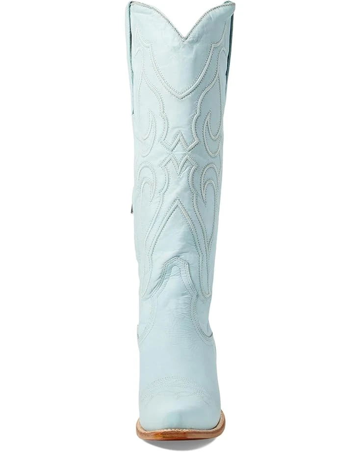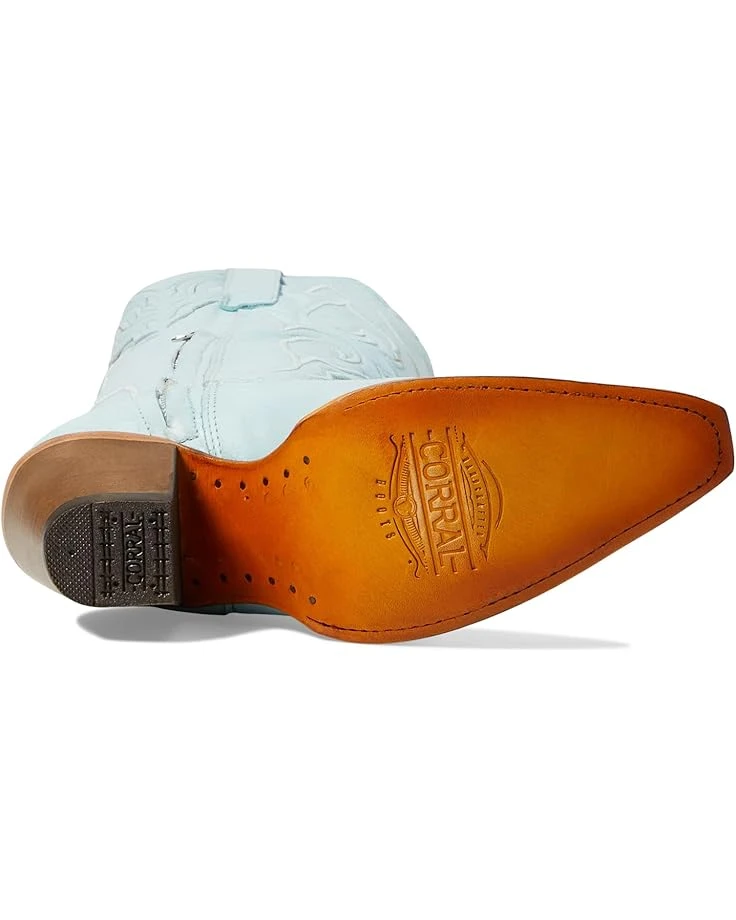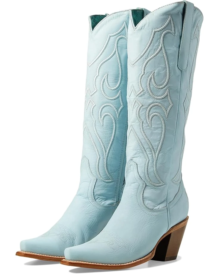 - Make a stunning statement as you head out for parties or special occasions wearing the Corral™ Boots Z5254, which come with a Lady baby blue embroidery and a tall top. The pull-on style equestrian boots come with a leather upper, leather lining, and a leather insole. The block heel is added for an elevated touch.